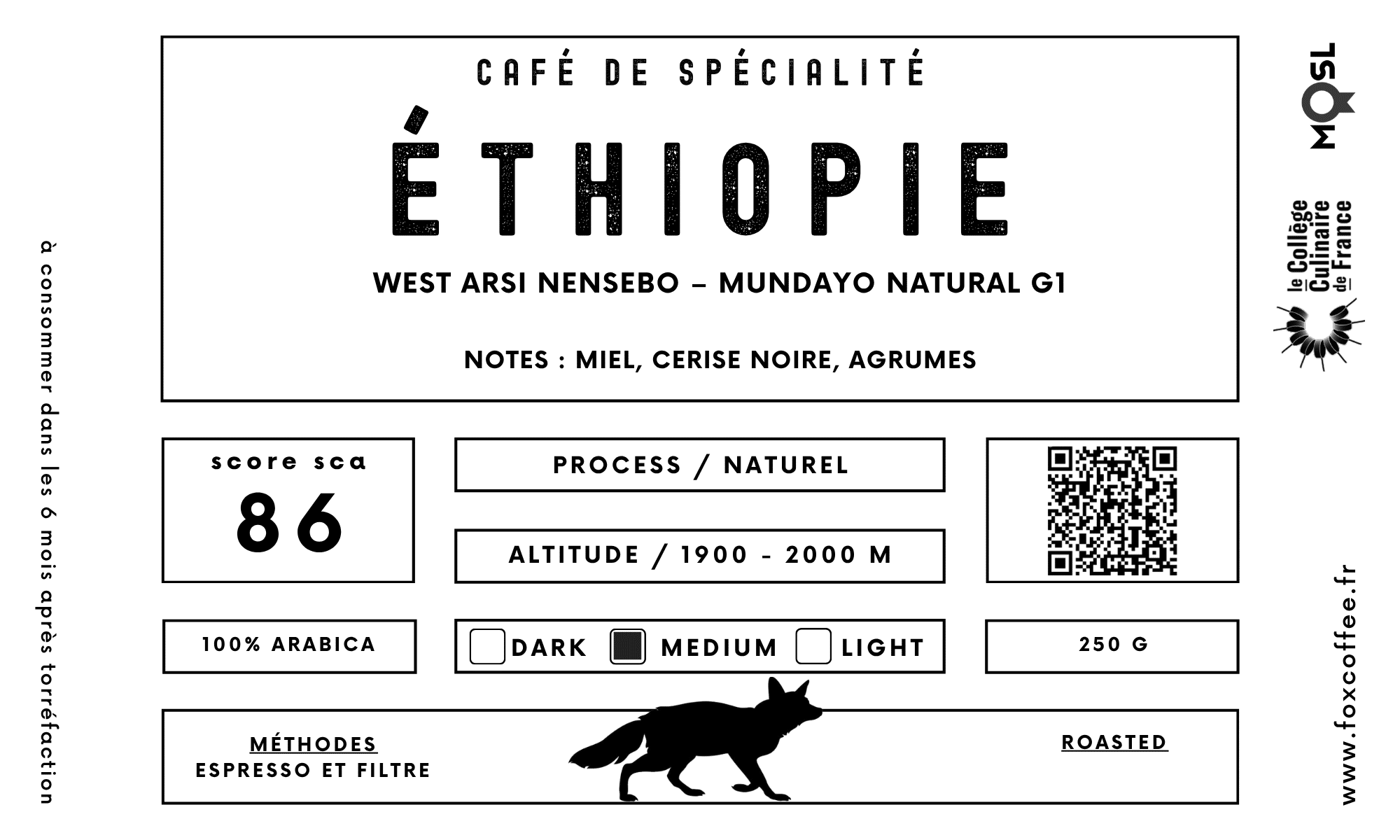 Ce café a obtenu un score SCA de 86 — preuve de son excellence en tasse. Issu d’un processus naturel, il révèle une palette aromatique lumineuse et complexe : Notes de chocolat au lait, miel, noisette, myrtille, cerise noire, agrumes et mélasse. Une attaque fruitée et sucrée, une acidité vive typique des cafés d’altitude, puis une finale ronde et crémeuse qui évoque le miel et la noisette grillée. Un café de pur plaisir, à la fois équilibré, onctueux et joyeusement expressif.